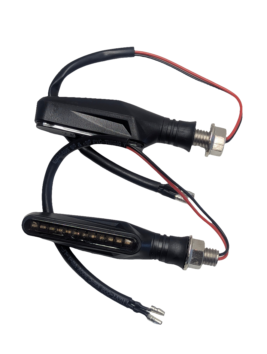 Povećajte sigurnost i stil svog motocikla uz E11 homologirane LED žmigavce s dinamičnim flow efektom. Opremljeni s 12 snažnih LED dioda, ovi žmigavci osiguravaju visoku vidljivost u prometu, čak i pri lošim uvjetima.